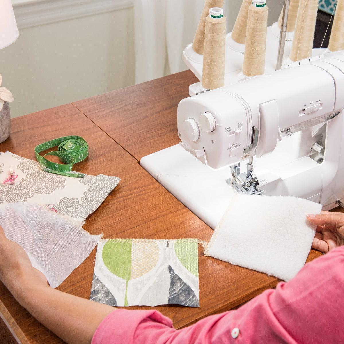 Functions include chain, cover, and triple cover stitches. All three cover needles are controlled by one tension dial, so you can save time with one simple adjustment.