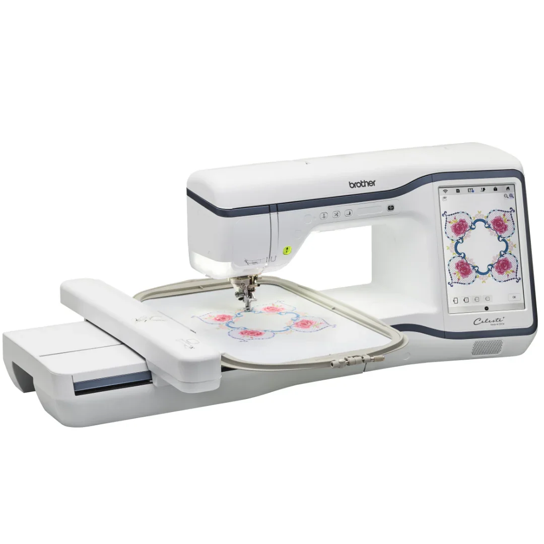 The Celeste CX1e has a maximum embroidery area of 9.5” x 14”, exceptional LED lighting, a clear and sharp 10.1” LCD digital display, and a number of cutting-edge apps for almost any project.