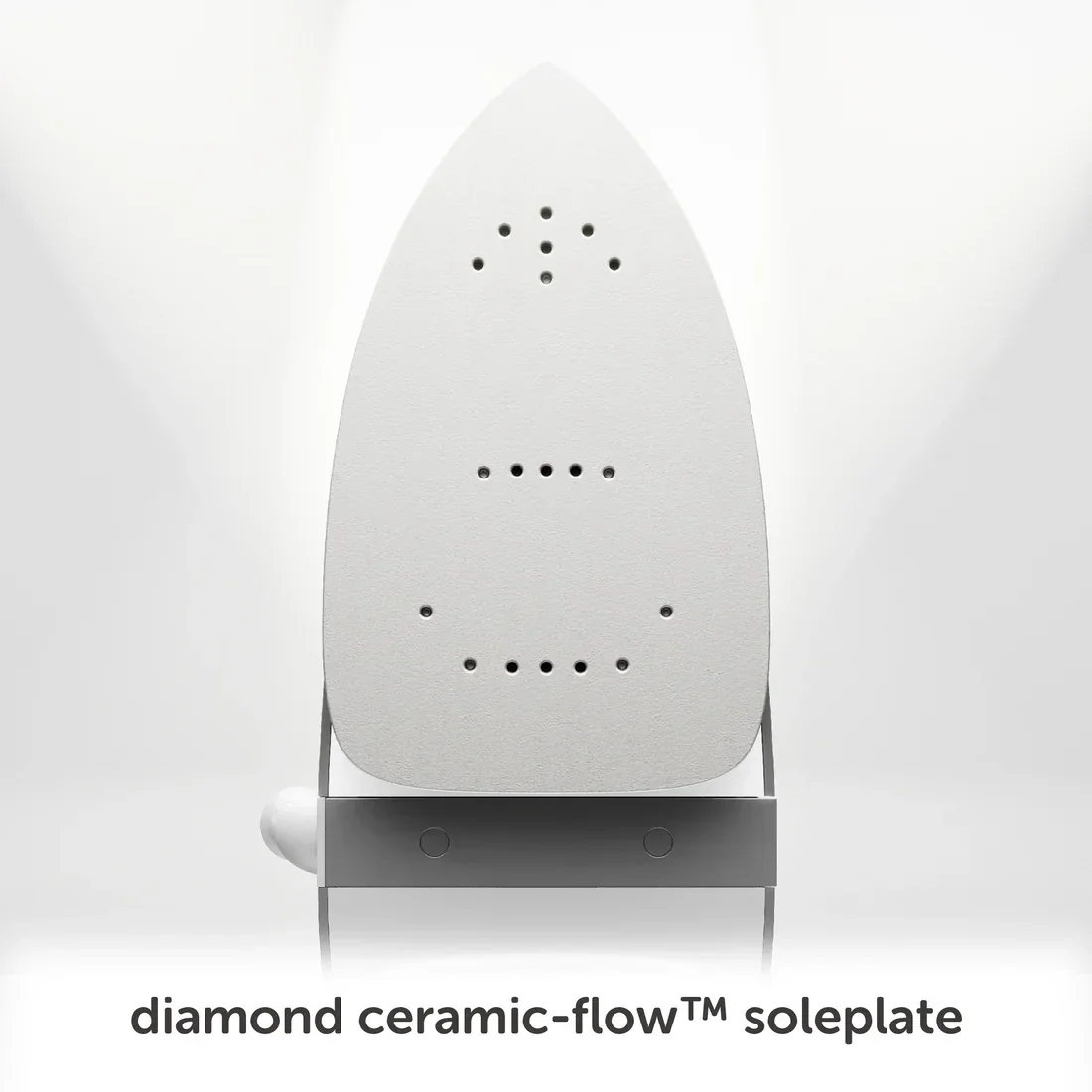 - Diamond Ceramic-Flow soleplate glides effortlessly over the fabric, providing quick, easy clean-up when using fusible interfacing.